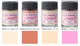 念のために橙黄色の下地にクリアピンク→クリアブラウンを吹いてみましたがただの黄色がかったこげ茶の肌になりました…。